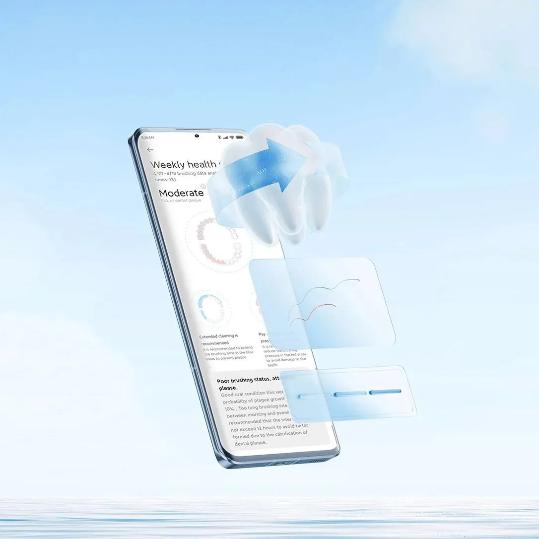 Приложение Mi Home/Xiaomi Home создает отчет о состоянии здоровья с информацией о рисках, таких как проблемы с деснами и зубной налет, что поможет вам более эффективно чистить зубы в следующий раз.