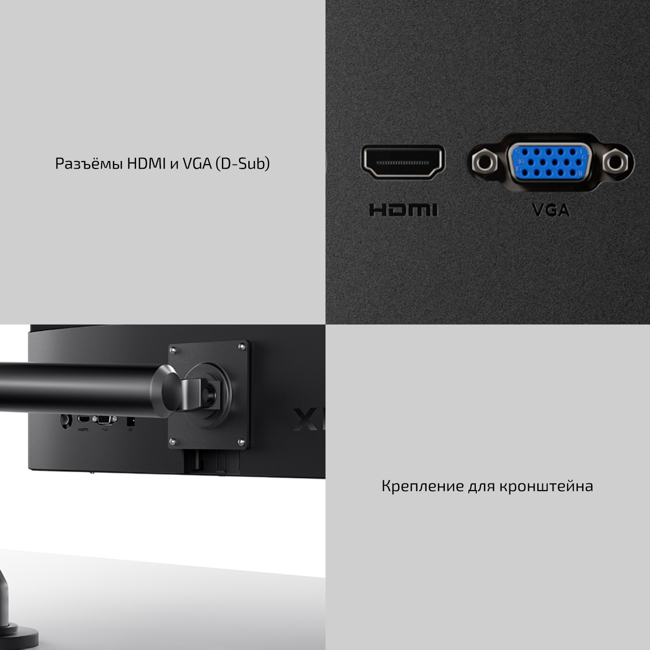 Xiaomi Monitor A22i – универсальное решение как для офиса, так и для домашнего использования. Причём использования где угодно и с чем угодно. Ведь монитор имеет все нужные порты: VGA и HDMI, благодаря чему может использоваться в различных сценариях. Ну и конечно присутствуют отверстия как для настенного крепления, так и для ножки. Так что, закрепить монитор можно как удобно его пользователю. Никаких компромиссов, только комфорт.