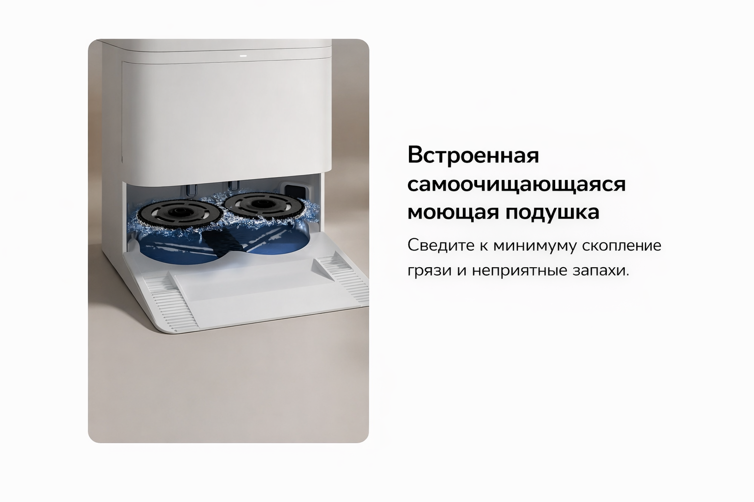 Станция самостоятельно очищает насадки после уборки, освобождая вас от ручной очистки.